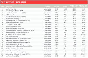 Salk Institute is listed among the top 25 institutions in all of North America in the “Regional Stars” section of the index, along with other esteemed centers such as Stanford University, the Lawrence Berkeley National Laboratory and the California Institute for Biomedical Research. These institutions dramatically increased their contribution to a selection of top natural science journals from 2012-2015.